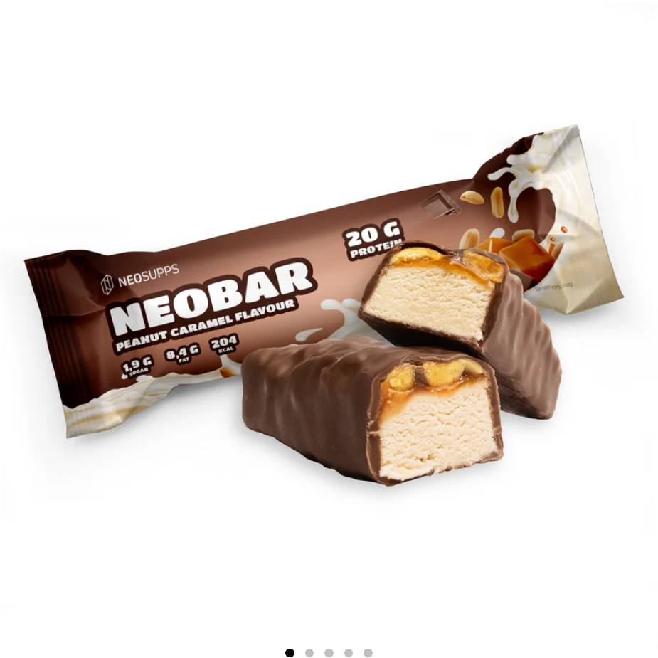 Erlebe Fitness in seiner köstlichsten Form mit unserem Proteinriegel, dem “NEOBAR – Peanut Caramel”. Jeder 60g-Riegel ist perfekt portioniert, um deine sportlichen Ziele mit 20 g Protein, nur 1,9 g Zucker, 8,4 g Fett und 204 kcal pro Riegel zu unterstützen.