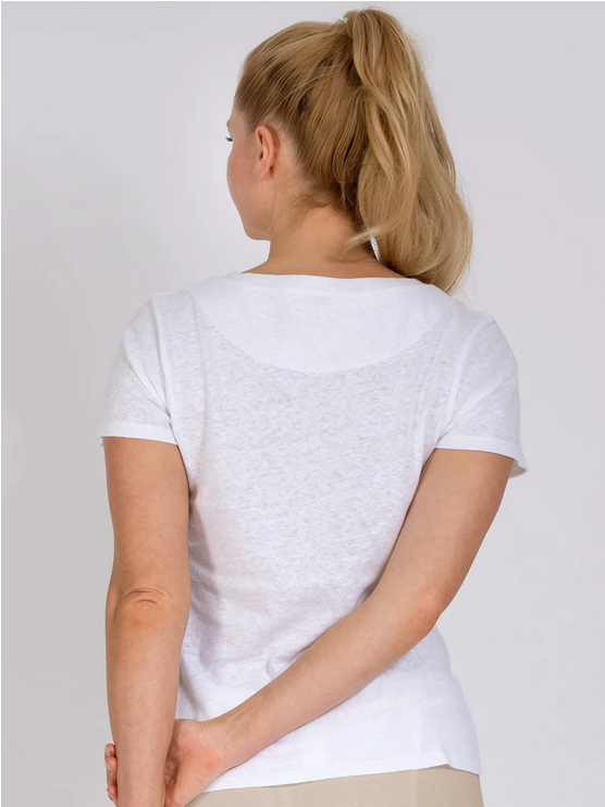 Die Kombination aus belgischem Leinen mit Baumwolle vereint die natürlichen Eigenschaften beider Materialien, um ein edles funktionales Oberteil zu schaffen.